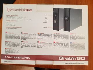 Caja externa para discos duros de 3,5 pulgadas con conexión SATA a USB. - Compatible con discos SATA. - Interfaz USB 2.0. - Incluye el adaptador SATA a USB. - No incluye disco duro.