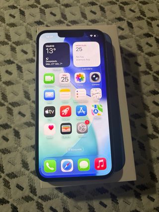 Teléfono móvil iPhone 13 en color azul. - Pantalla de 6.1 pulgadas. - Capacidad de almacenamiento de 128 GB. Bateria al 70% Ni un solo arañazo ni golpe Como nuevo funciona perfectamente y la bateria me aguanta bastante bien