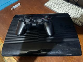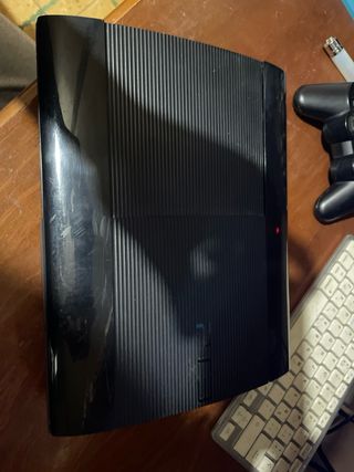 Consola PlayStation 3 Super Slim en color negro con mando original y cables posibilidad de instalar hem por poco mas tiene su mantenimiento hecho y cambio de pasta termica funciona correctamente Un saludo - Capacidad de 80GB. - Diseño Super Slim.