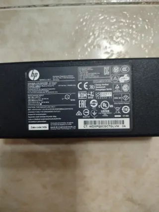 Adaptador de corriente HP para portátiles. Diseñado para ofrecer un rendimiento fiable. - Voltaje de entrada: 100-240V, 1.4A, 50-60 Hz. - Voltaje de salida: 19.5V, 4.2A, 90W MAX. - Conector: SENS. - Código de fecha: 1406. - Fabricado por Chicony Power Technology Co., LTD.