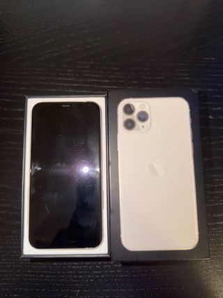 Teléfono móvil iPhone 11 Pro con 64 GB de almacenamiento. - Color blanco. - Diseño elegante y moderno. - Tiene la parte de atrás un poco rota, pero, no perjudica en nada. - Tiene un 71% de salud de batería. -Venta en mano.