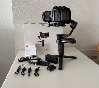 Estabilizador Zhiyun Weebill-S, gimbal profesional para cámaras réflex y mirrorless. Está nuevo, sin apenas uso, en perfecto estado. Ideal para creadores de contenido, videógrafos o fotógrafos que busquen tomas totalmente estables y fluidas. Incluye batería integrada, controles de modo y joystick, rosca inferior para trípode y agarre ergonómico. Compatible con la mayoría de cámaras Canon, Sony, Nikon, Panasonic, etc. Características destacadas: -Diseño compacto y ligero -Modos: PF, L, POV, Vortex, Go, y Lock -Autonomía hasta 14h -Soporta cámaras de hasta 3 kg Conexión por cable o inalámbrica (según modelo de cám