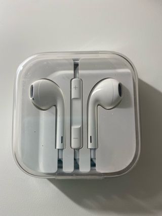 Auriculares Apple en color blanco, completamente nuevos y sin usar. - Diseño ergonómico para mayor comodidad. - Cable con control remoto y micrófono integrados.