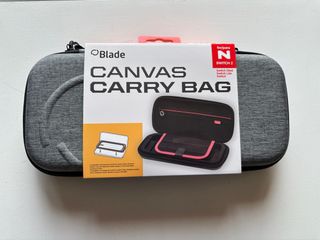 Funda de transporte Canvas Carry Bag de la marca Blade, diseñada para Nintendo Switch 1 y 2. - Color gris jaspeado. - Interior con compartimentos para consola y accesorios. - Cierre de cremallera.