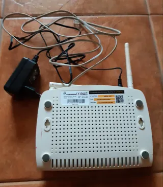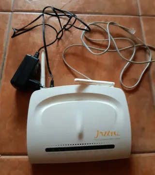 Router ADSL inalámbrico de JazzTel. Incluye adaptador de corriente y cables. - Diseño compacto y elegante. - Antena para conexión Wi-Fi.