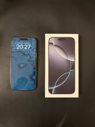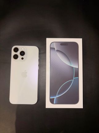 Teléfono móvil iPhone 16 Pro Max en color plata con 256 GB de almacenamiento. hace unas fotos increibles - Capacidad de 256 GB. - Color Blanco - Tiene una pequeña grieta cuando se ve el movil desde el lado como se ve en la foto - Viene con una funda y el cable nuevo y la caja original - 90% de salud de bateria y tiene 1 año de uso