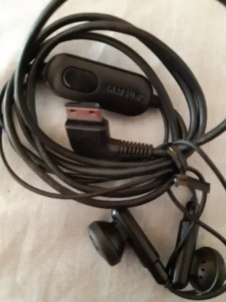 Auriculares Samsung en color negro. - Conector de audio. - Control en línea.