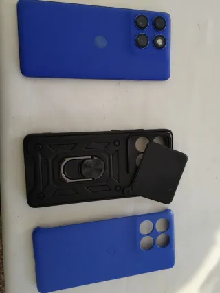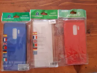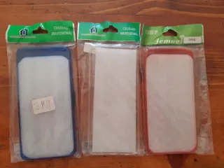 Lote de tres fundas para móvil. - Funda azul. - Funda transparente. - Funda roja.