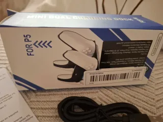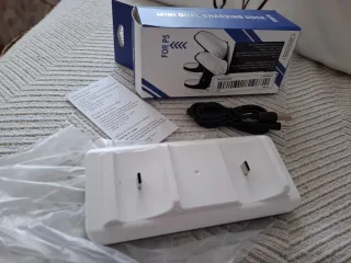 Base de carga doble blanco para mandos de PS5 Totalmente NUEVO. Permite cargar dos mandos DualSense simultáneamente. Diseño compacto tipo dock, ideal para tener los mandos siempre cargados y colocados. Incluye: – Base de carga doble – Cable de carga USB.