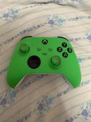 Mando de control para Xbox en color verde. - Diseño ergonómico. - Botones frontales A, B, X, Y. - Sticks analógicos. - Cruceta. - Botones de menú y captura.