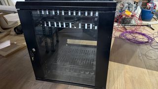 Armario Rack de 12U con patas. - Color negro. - Puerta frontal de cristal. - Incluye llave para la puerta. -aperttura pos ambos laterales con llave. Viene con regleta de enchufes y unas regletas de rj45. Con 4 patas de goma fijas. Mide 60x60 aprox