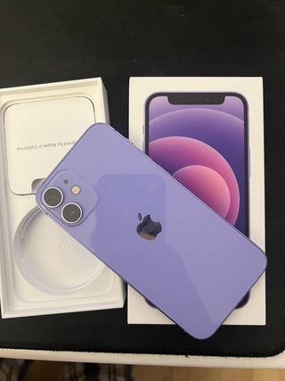 Teléfono móvil Apple iPhone 12 Mini con 64GB de almacenamiento en color morado. Incluye caja original. - Capacidad de 64GB. - Color morado. - Batería al 75%.