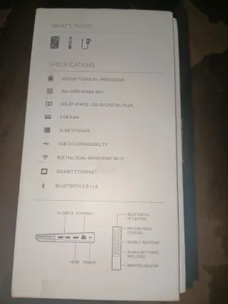 Dispositivo de streaming Nvidia Shield TV Pro. Muy poco usado, comprado en julio 2025 (en garantía). Lo vendo por comprar Smart TV y ya no lo necesito. La imagen que produce es espectacular, el mejor dispositivo de streaming del mercado. - Soporta 4K HDR y Dolby vision-atmos - Funciona con Android TV. - Incluye todos los accesorios: control remoto y fuente de alimentación.