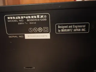 Lector de cassettes Marantz en color negro. - Modelo: 80SD53/02B - Voltaje: 230V - Frecuencia: 50Hz - Diseñado y fabricado por Marantz Japan Inc. - Número de serie: SV009536006878