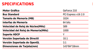 Tarjeta gráfica MSI con disipador pasivo. - Modelo: N210-MD1GD3H/LP - Memoria: 1GB DDR3. Testada y funcionando correctamente. - Salidas: HDMI, DVI, VGA - Bajo perfil