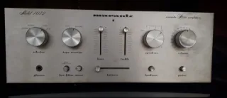 Amplificador Marantz modelo 1072 en color plata. Un clásico para tu equipo de sonido. - Selector de entrada. - Control de monitor de cinta. - Control de graves y agudos. - Control de balance. - Control de volumen. - Conexión para auriculares. - Filtro de paso bajo. - Control de loudness. - Botón de encendido/apagado.