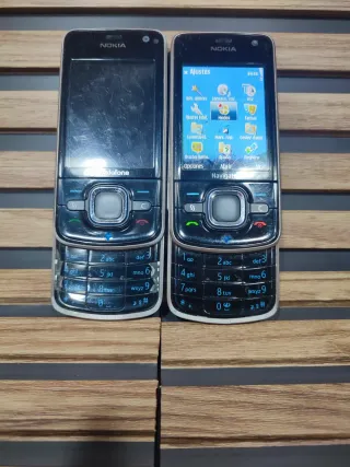 2 Teléfonos móviles Nokia 6210 Navigator en color negro. Un dispositivo clásico con funciones de navegación. Uno en my buen estado y el otro con algún defecto como se ve en las fotos, funcionan los 2 pero no los comprobé exhaustivamente, solo tiene uno batería y el otro no, son de Vodafone y no tengo cargador. - Diseño deslizante. - Pantalla a color. - Teclado numérico.