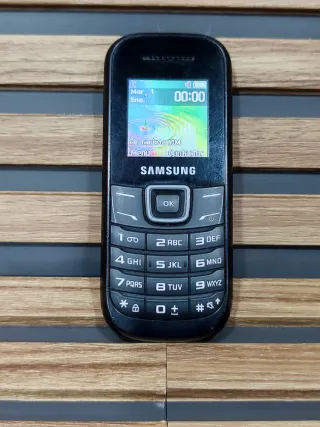 Teléfono móvil Samsung GT-E1200i en color negro. Un dispositivo sencillo y funcional. En muy buen estado sin cargador. - Pantalla a color. - Teclado numérico. - Diseño compacto.