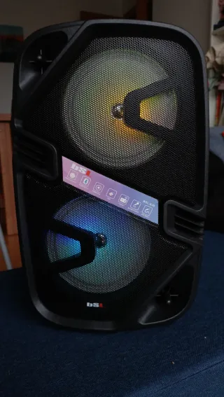 Altavoz portátil con luces LED integradas. - Potencia de 20W. - Conectividad Bluetooth. - Diseño moderno y llamativo.