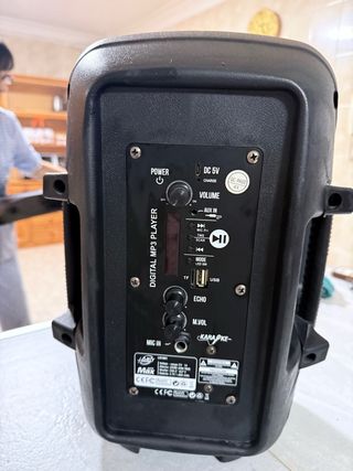 Altavoz portátil Party House serie Max, ideal para karaoke y fiestas. Su diseño es robusto y funcional. Altavoz potente con USB, tarjeta SD, entrada AUX y micrófono. Funciona con batería recargable. Ideal para fiestas o karaoke. 💶 50 €