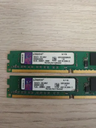Se venden dos módulos de memoria RAM Kingston. 2x2gb ddr3 - Modelo KVR. - Fabricadas en China.