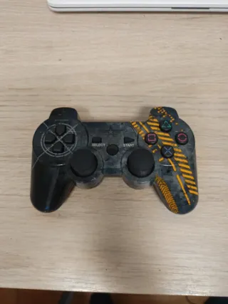 Mando para PlayStation 3 con un diseño llamativo. - Diseño con detalles en amarillo y negro. - Botones de acción y direccionales. - Sticks analógicos. - Botones Select y Start.