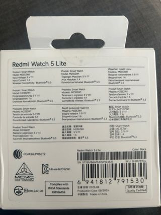 Reloj inteligente Xiaomi Redmi Watch 5 Lite en acabado negro y plateado. - Diseño moderno y ligero. - Correa ajustable para mayor comodidad. Sin abrir , con factura . Lo vendo porque no lo necesito . Precio no negociable.