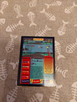Tarjeta de juego Super Monaco GP II de Sega, con Ayrton Senna. - Game Card de Ayrton Senna. - Super Monaco GP II para Sega. - Incluye texto sobre la simulación de Fórmula 1. - Sega Super Play 78.