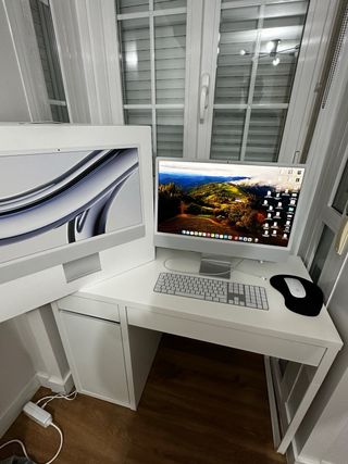 IMAC 24" SILVER/8C CPU/10C GPU PROCESSOR AND GRAPHICS Apple M3 chip 8CCPU and 10CGPU MEMORY 16GB unified memory STORAGE 1TB SSD storage ETHERNET ADAPTER Gigabit Ethernet THUNDERBOLT Two Thunderbolt / USB 4 ports USB Two USB 3 ports MOUSE AND TRACKPAD MAGIC MOUSE-INT PRO APPS BUNDLE FOR EDU NONE SW FINAL CUT PRO NONE SW LOGIC PRO NONE KEYBOARD AND DOCUMENTATION MAGIC KYBD TOUCH ID KEYPAD-SPA COUNTRY KIT COUNTRY KIT-ESP País de OrigenIE Copyright lev Comprada en 2024, prácticamente no la he usado. En su momento costó 2565.00 €. Tengo la factura de compra. Teclado en español, todo original.