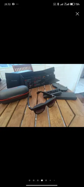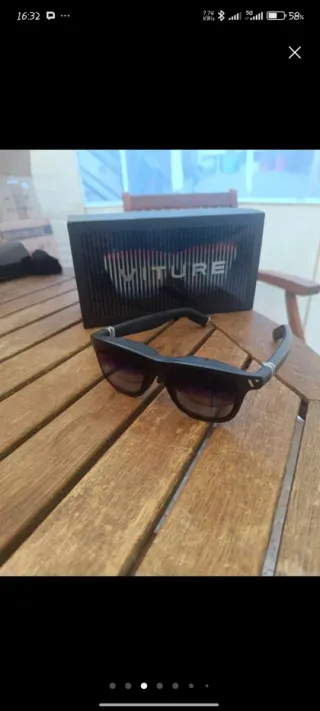 Gafas inteligentes Viture One con diseño moderno y elegante. Muy poco uso, - Lentes oscuras. - Montura negra. - Incluye funda protectora y distintos adaptadores para nariz