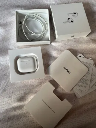 Auriculares inalámbricos Apple AirPods en color blanco. Incluyen su estuche de carga y cable. - Diseño elegante y ergonómico. - Estuche de carga compacto. - Cable de carga incluido.