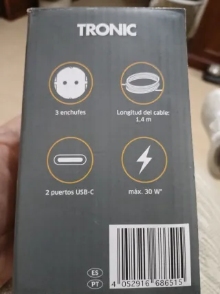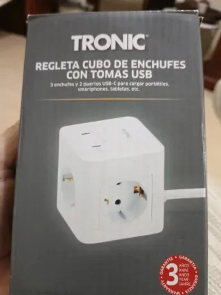 Regleta tipo cubo con enchufes y puertos USB-C. - 3 enchufes. - 2 puertos USB-C. - Ideal para cargar portátiles, smartphones, tabletas, etc. - Garantía de 3 años.