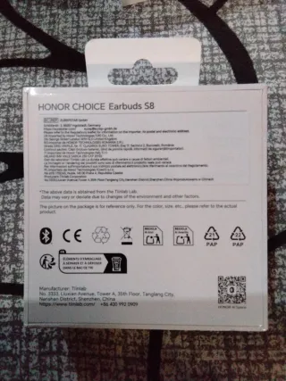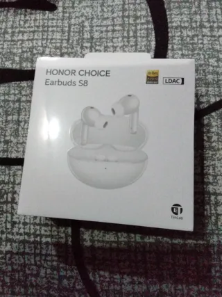 Auriculares inalámbricos Honor Choice Earbuds S8 en color blanco. - Diseño ergonómico para mayor comodidad. - Incluye estuche de carga. - Tecnología Hi-Res Audio y LDAC para una calidad de sonido superior.