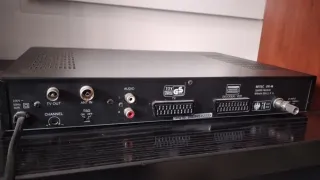 Reproductor combinado de VHS y DVD. - Diseño plateado. - Panel frontal con botones de control. - Puertos de conexión en la parte trasera.Con lote VHS 40und.