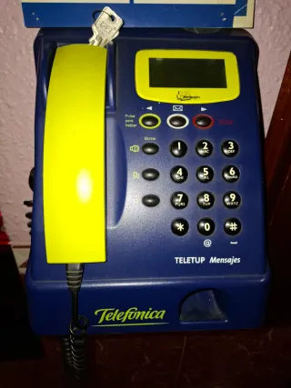 Cabina telefónica Teletup de Telefónica. Un diseño clásico para tu colección. - Color azul y amarillo. - Incluye teléfono con auricular amarillo. - Teclado numérico y pantalla. - Botones de función y SOS.