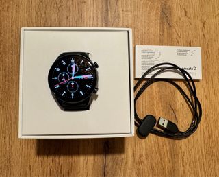 Reloj inteligente Amazfit GTR 3 Pro en color negro NUEVO. Incluye cable de carga. Es un regalo pero estos relojes no son para mi. Usado unas horas solo. No incluye el envoltorio exterior porque se rompió el carton al abrirl el regalo. Puedo enseñar fotos del envoltorio original. Precio original 102,95€ - Pantalla redonda. - Diseño elegante y moderno. - Correa cómoda.