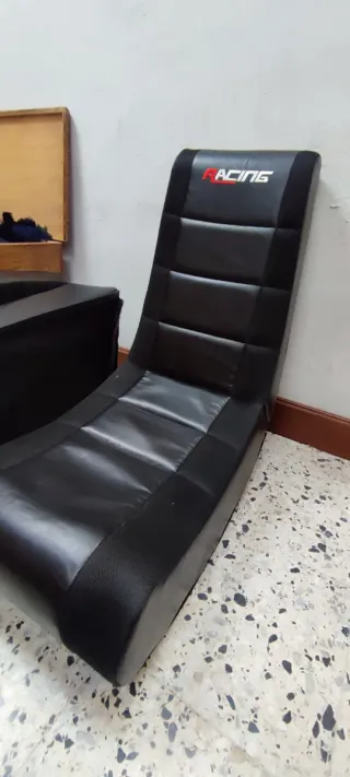 Sillón de estilo gamer en color negro. - Diseño ergonómico. - Acabado en polipiel. - Logo de la marca en la parte superior. 20€ cada uno. 30€ si te llevas los 2 No se envía.