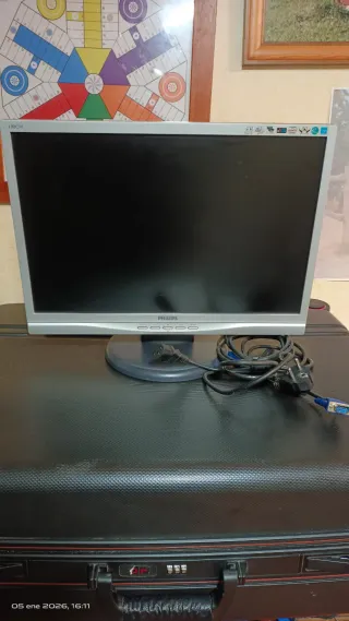 Monitor de ordenador Philips. - Pantalla de 19 pulgadas. - Color plateado y negro.