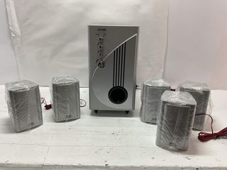 Sistema de altavoces Airis para Home Cinema. - Configuración 5.1. - Potencia de 80W RMS. - Conexión inalámbrica 2.4 GHz. SIN ESTRENAR