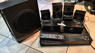 Sistema de cine en casa Panasonic 5.1 Solo tengo 3 Altavoces y el subwoofer pero se pueden añadir 2 altavoces mas. También es lector de Bluray