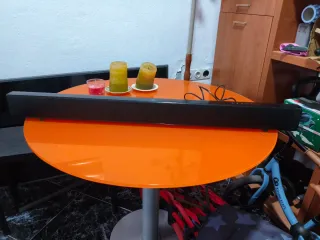 Sistema de sonido envolvente con barra de sonido y subwoofer. - Potencia total de 510W. - Incluye barra de sonido, subwoofer inalámbrico y altavoces desmontables que pueden utilizarse como traseros (inalámbricos, con batería) - Modo música Bluetooth. - Incluye soporte pared para la barra y para poner los altavoces traseros en pared cuando se desacoplan de la barra. Aunque tiene muy poco uso, el subwoofer dejó de funcionar. Simplemente no enciende. El resto funciona perfectamente y puede usarse como barra de sonido. Solo recogida en mano, por dimensiones y peso no se puede enviar por Wall El conjunto costó más de 800€