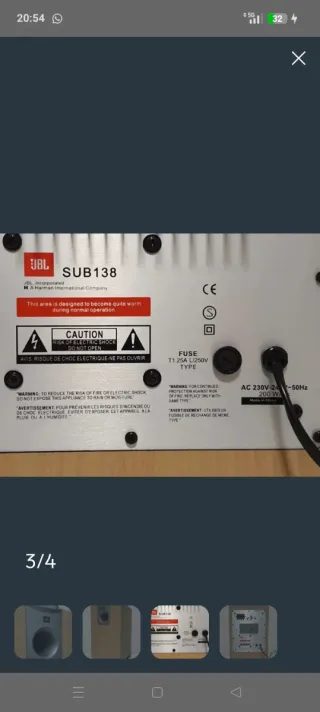 El precio mostrado es el de venta en nuestra tienda. El precio de este producto en nuestra página web puede ser diferente. Este artículo está disponible en nuestra tienda de Sabadell. subwoofer home cinema jbl sub135 CC008_E1208739_0 es un objeto que se ofrece en estado muy bueno. Todos nuestros productos cuentan con garantía de 3 años y un plazo de devolución de 14 días. Informacion adicional: Revisar el estado de uso en las imágenes. | Marca: Jbl | Amplificador: Si | Conectividad: Rca, xlr | Cables: Si | Modelo: Sub135 | Potencia: 150 | Mando a distancia: No | Tipo: Subwoofer activo. Precio NO negociable.