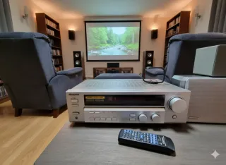 Equipo de Home Cinema Kenwood DVR-7000 en buen estado. Se incluye el receptor y 4 altavoces. El equipo presenta un ligero desgaste por el uso, pero se encuentra en buenas condiciones generales. - Receptor DVD/AV Kenwood DVR-7000. - Cuatro altavoces. - Sistema de sonido envolvente.