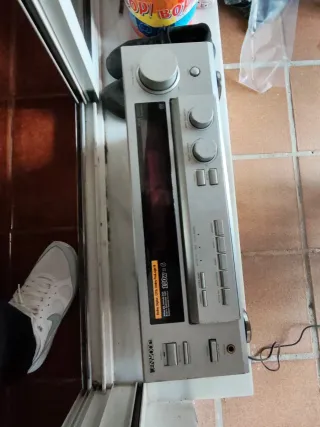 Receptor de audio y video Kenwood Slim modelo VRS-6200 en acabado plateado. Home cinema 5.0. El subwoofer me lo he quedado para mi estéreo. Sonido envolvente con altavoces Denon. Funciona a la perfección con un sonido nítido. Regalo soportes para los dos parlantes traseros y un cable óptico. Entrega en mano.