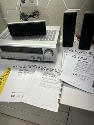 Home cinema Kenwood. amplificador, subwoofer y los tres altavoces delanteros (los dos traseros no los tengo). Con cableado e instrucciones originales y en perfecto estado.