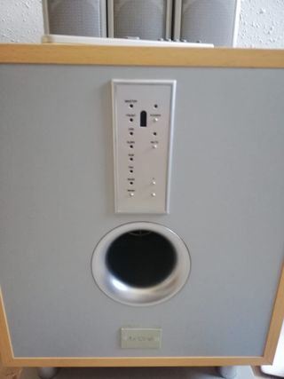 home cinema prácticamente nuevo, se compone de 2 altavoces traseros 2 delanteros el pequeño y el subwoofer de la centralita. Aparte incluye todo el cableado y el mando