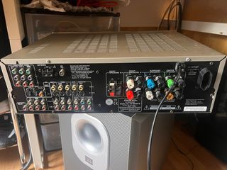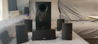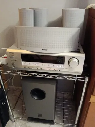 Vendo equipo Home Cinema 5.1 Onkyo completo (Modelo HT-R330). Incluye el receptor AV, 5 altavoces satélite, el subwoofer y su mando a distancia original. También entrego todo el cableado necesario para que solo tengas que llegar y conectar. Aunque tiene sus años, está muy bien cuidado y el sonido es BRUTAL, perfecto para cine en casa o música con graves potentes. Funcionando de diez hasta hace nada. IMPORTANTE: El conjunto es grande y el receptor pesa bastante (es de los robustos que duran siempre), así que priorizo entrega en mano. Si es para envío, consultadme antes por el tema del peso total.