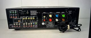 Amplificador con excelente calidad de sonido. Equipo robusto y fiable, ideal para montar un sistema home cinema 5.1 / 6.1 o para escuchar música con altavoces estéreo. • Sistema 6.1 canales • Potencia 65 W por canal a 8 Ω • Decodificación Dolby Digital EX, DTS-ES y Dolby Pro Logic II • Conversores 24-bit / 96 kHz • Salida para subwoofer • Entrada multicanal 5.1 • 2 entradas ópticas + 1 coaxial digital • Varias entradas analógicas RCA • Conexiones de vídeo componentes, S-Video y compuesto 435x150x376mm 9,8 kg. Incluye mando a distancia original Estado: Buen estado