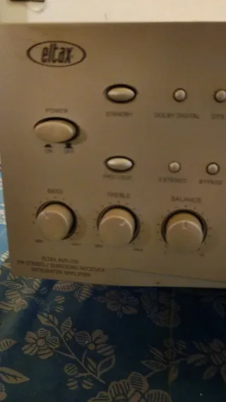 Sistema de altavoces Eltax para cine en casa, en color beige y marrón. Se incluye un conjunto de 5 altavoces: dos altavoces de suelo, dos altavoces satélite y un altavoz central. Los altavoces están en buen estado y listos para usar. - Altavoces de suelo de gran tamaño. - Altavoces satélite compactos. - Altavoz central para diálogos nítidos. Utiliza un display pioneer que viene incluido en el precio.