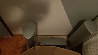 prácticamente nuevos,ideal para home cinema o diferentes usos. excelente calidad de sonido.con soportes de anclaje a pared o pié y tornillería.